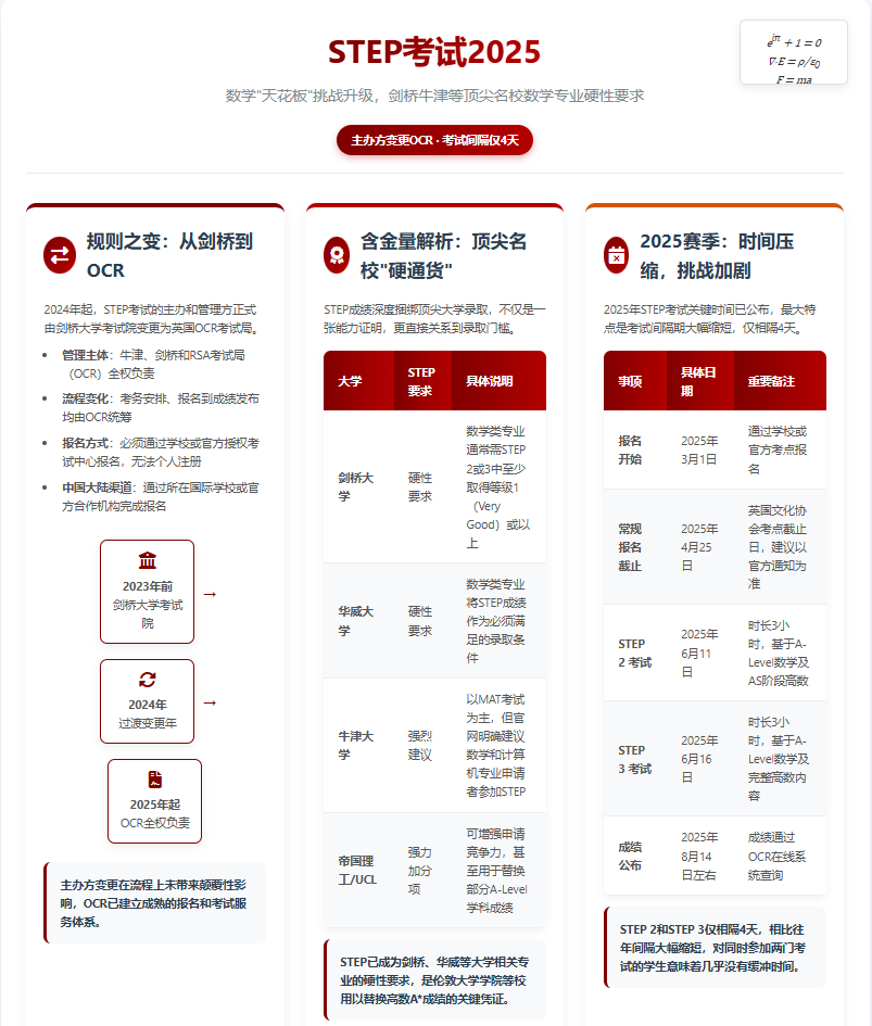 2025年STEP考试的关键时间节点已经全部公布,最大的特点是考试间隔期被大幅缩短,备考节奏更为紧张。