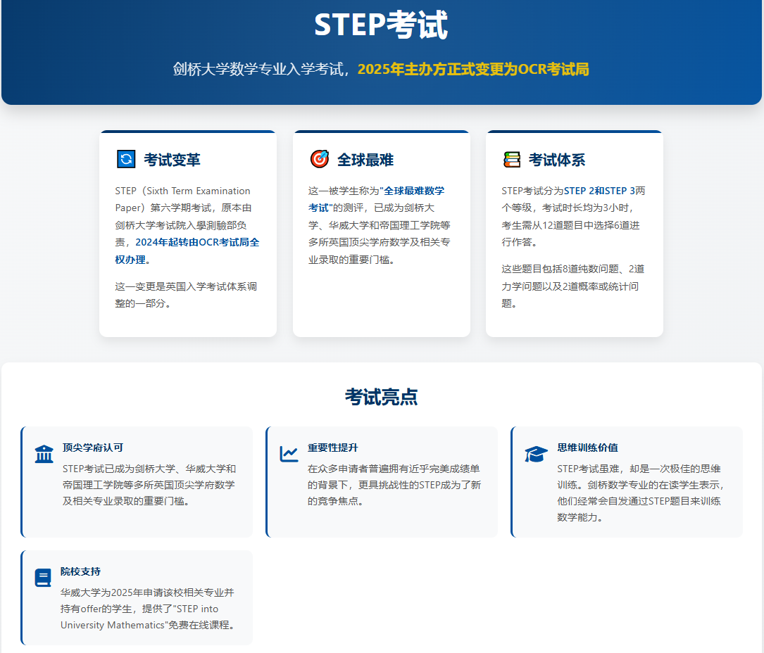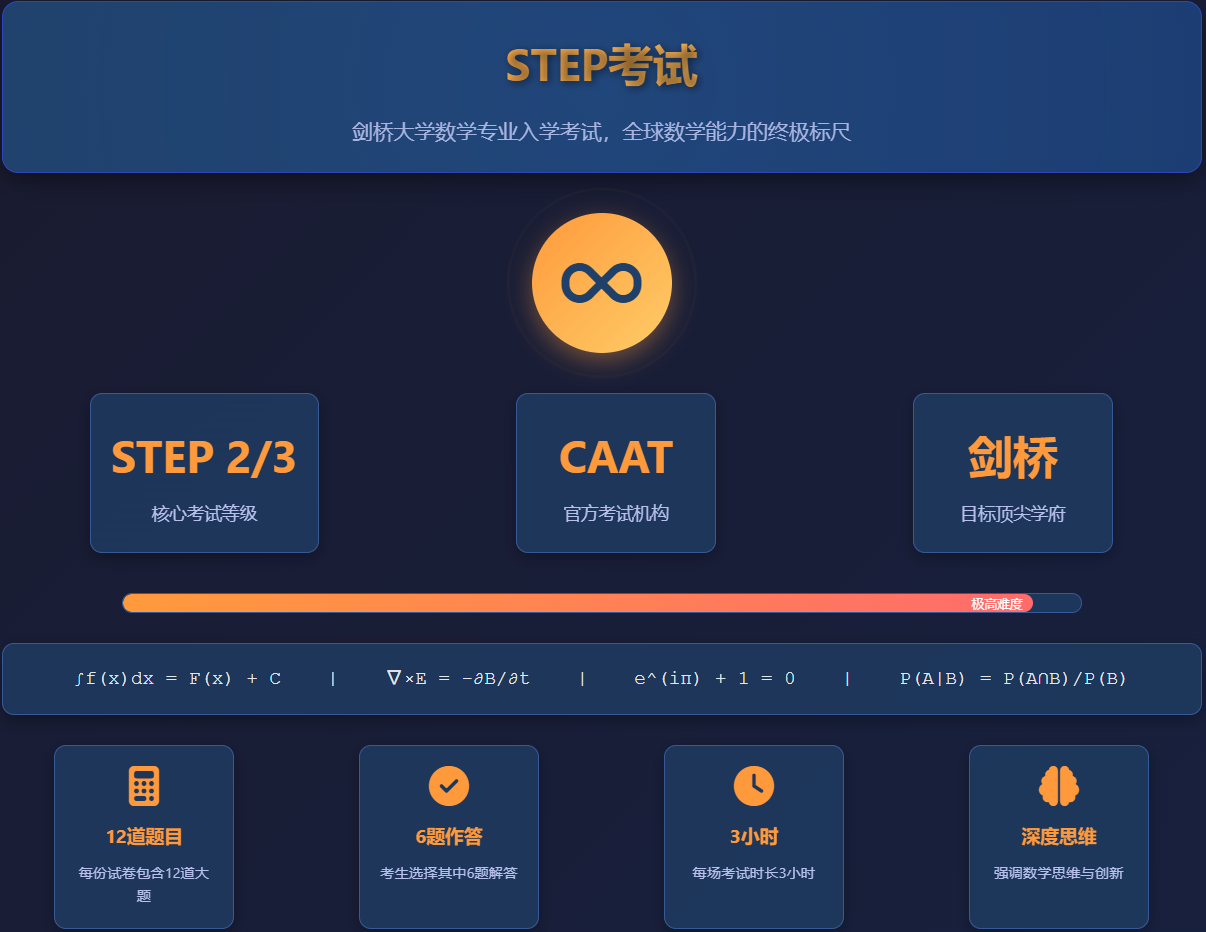 STEP考试作为全球最具挑战性的数学入学考试,正在经历深刻的变革。对于有志于申请顶尖大学数学相关专业的学生而言,理解这些变化、调整备考策略、培养真正的数学思维能力,比以往任何时候都更加重要。在这个数学的终极挑战中,每一次思维突破都是向卓越迈出的坚实一步。