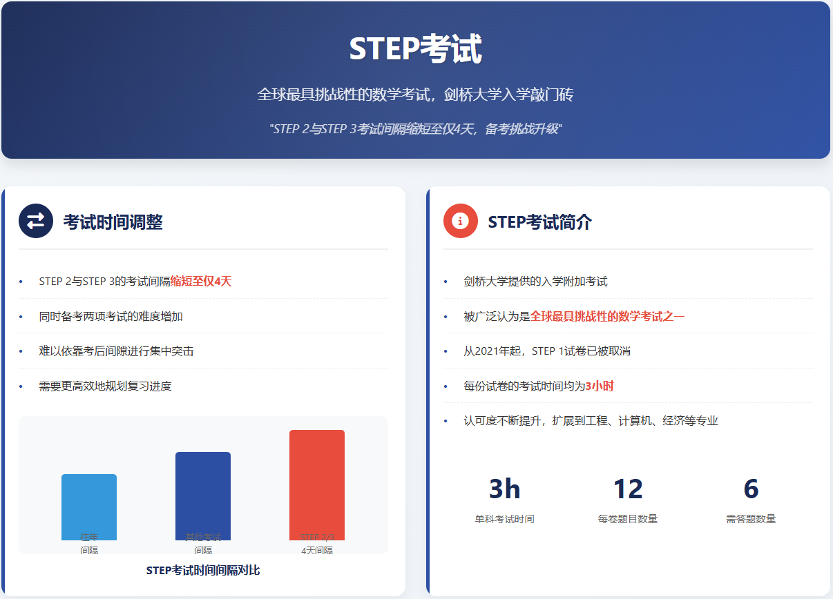 以上就是关于【STEP考试迎重大变革:2025年报名启动,成牛剑G5必备敲门砖】的内容,如需了解STEP考试动态,可至STEP考试官网获取更多信息。