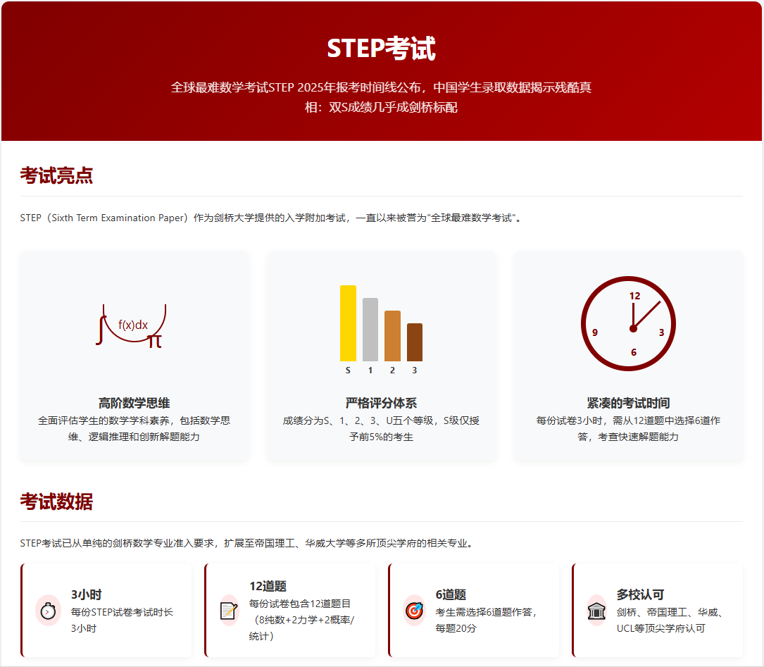 全球最难数学考试STEP 2025年报考时间线公布,中国学生录取数据揭示残酷真相:双S成绩几乎成剑桥标配